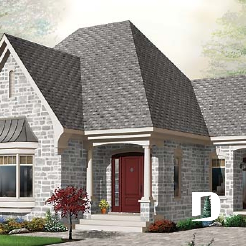 Petit bungalow style manoir conçu pour baby-boomer, une seule chambre et terrasse couverte