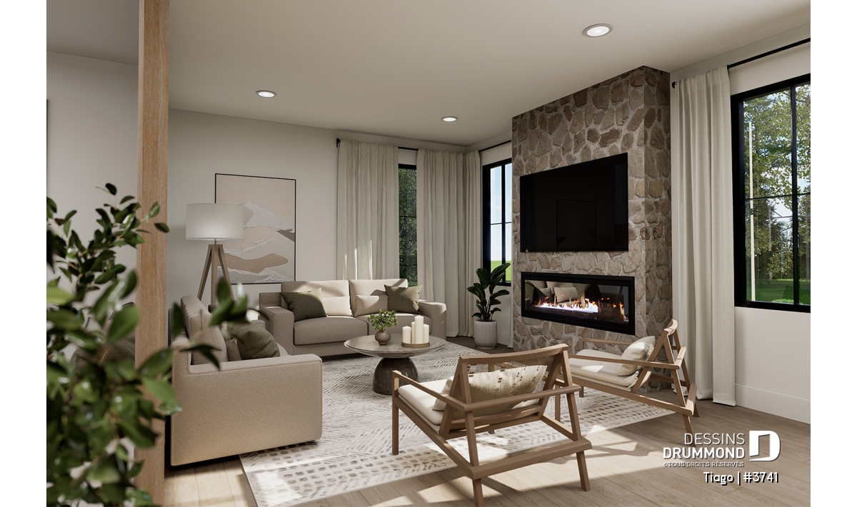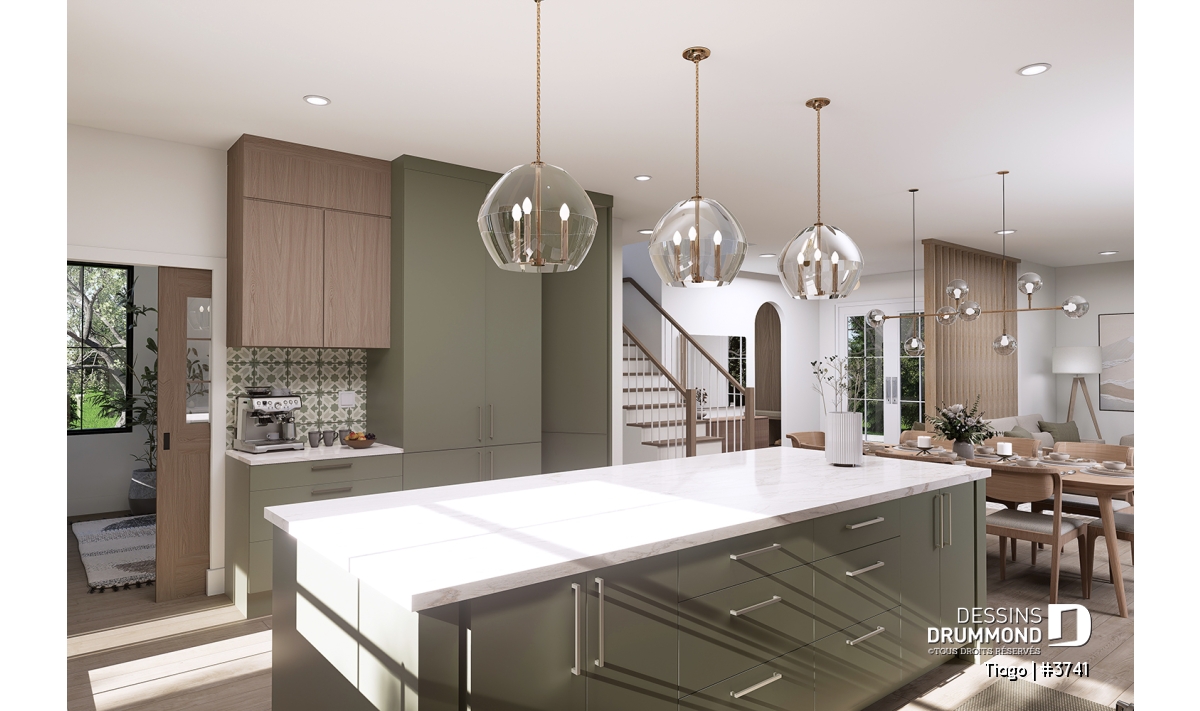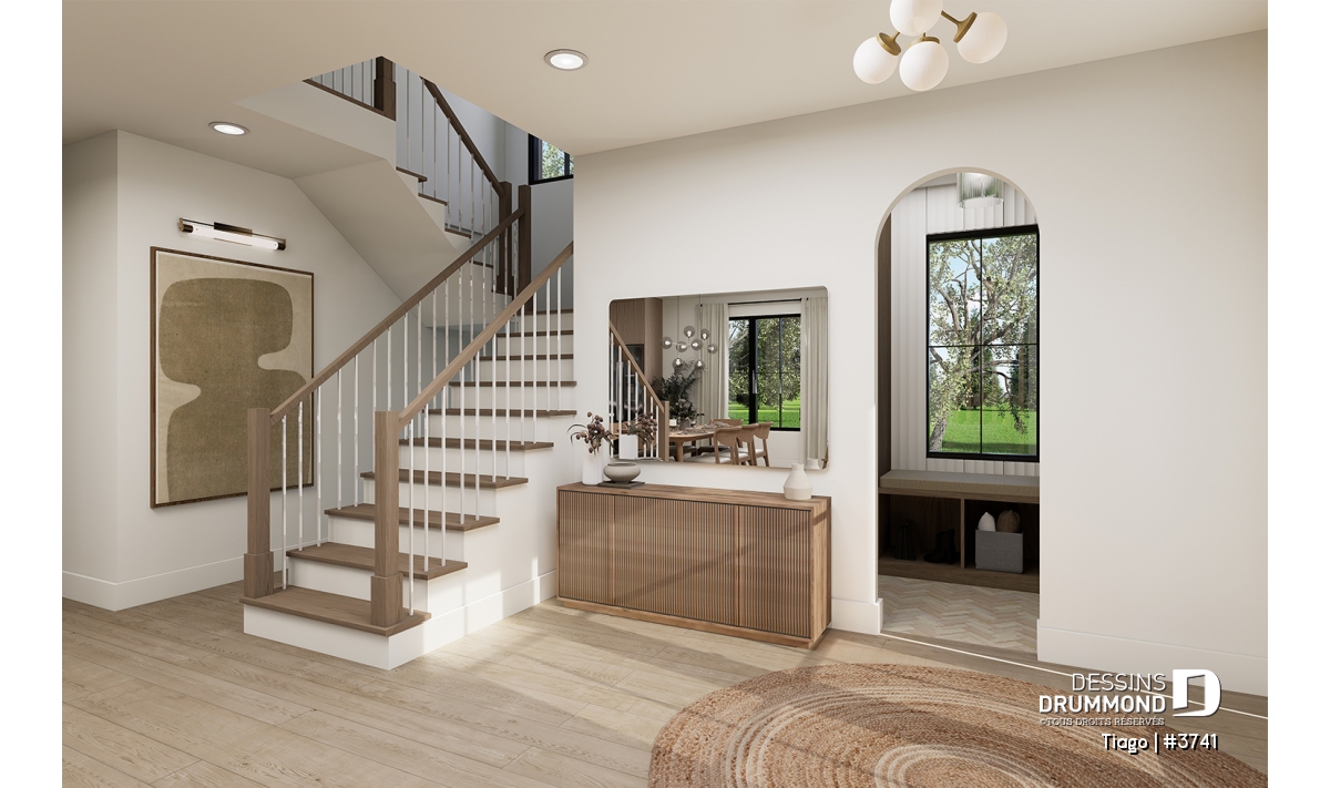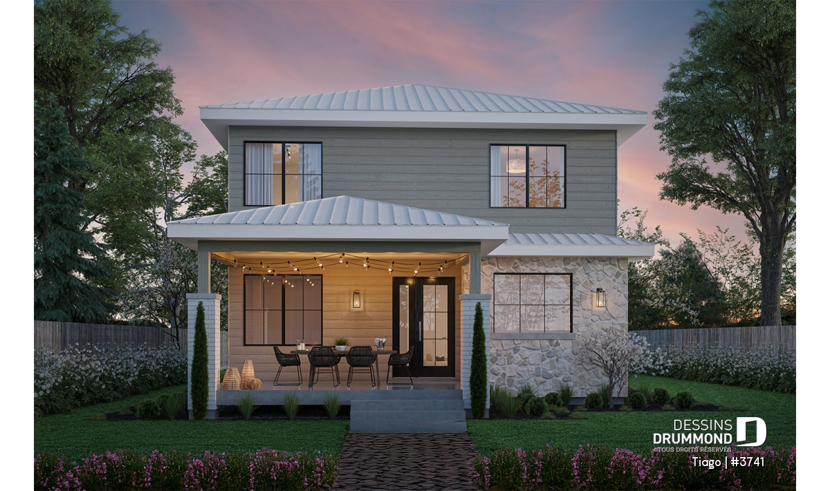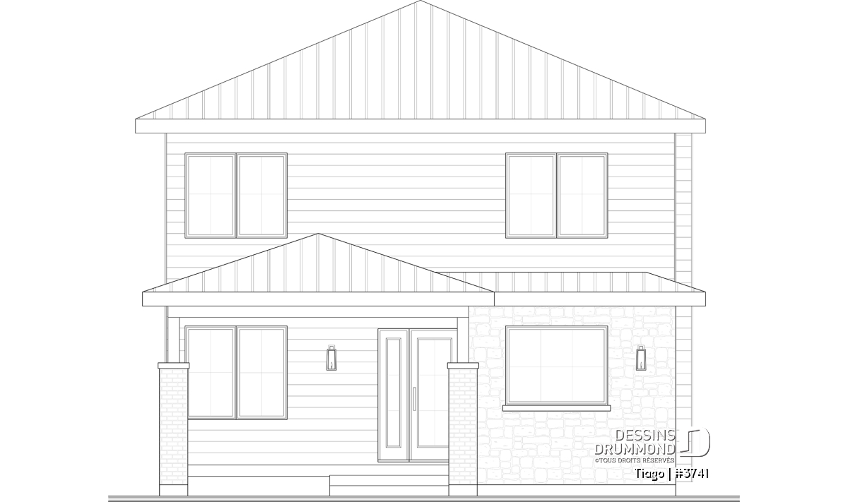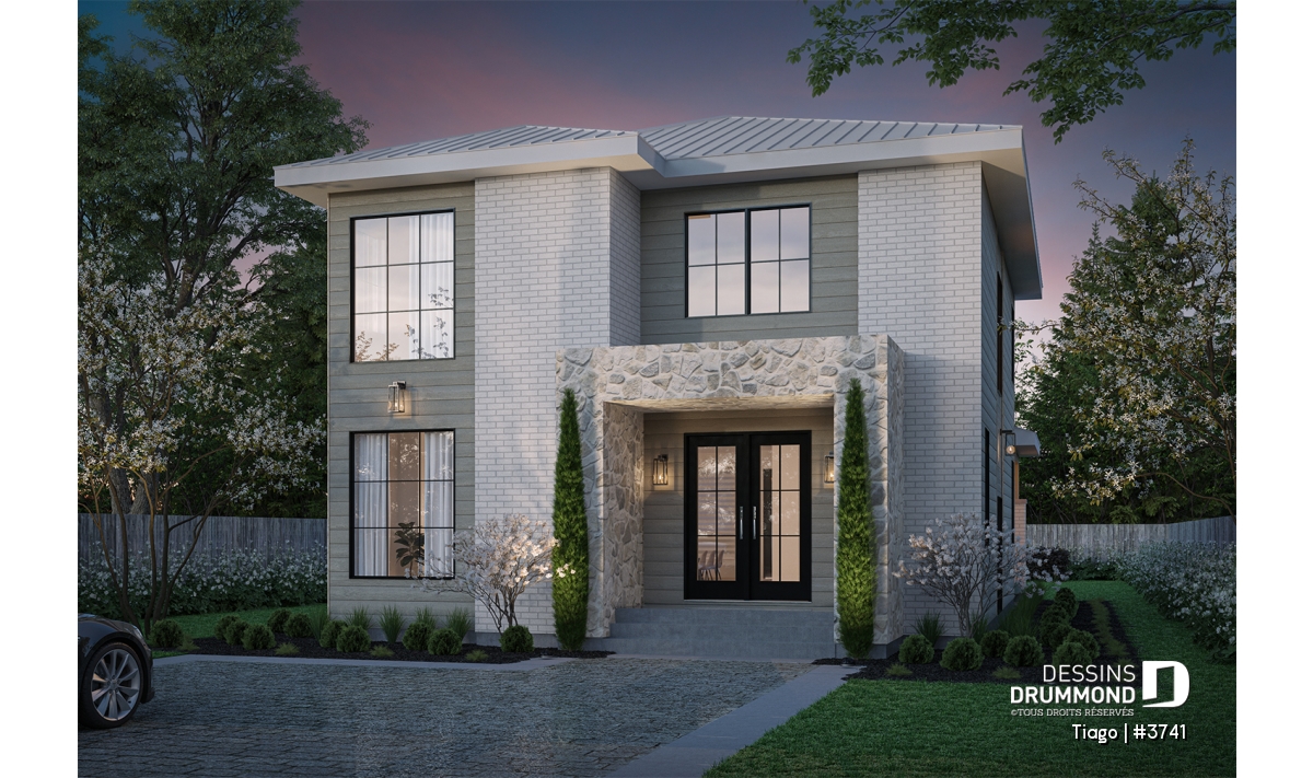 Laissez-vous séduire par le plan de maison TIAGO (#3741), une demeure au design raffiné qui marie harmonieusement des matériaux bruts au charme naturel avec des lignes épurées et modernes. Avec 2184 pi² aménagés sur deux étages, et la *possibilité d’ajouter un sous-sol entièrement aménagé de 1101 pi², cette maison offre un espace de vie généreux et fonctionnel.
