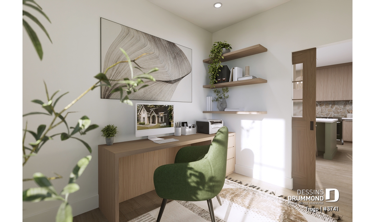 Bureaux (ou salle de jeux) en retrait de la cuisine.