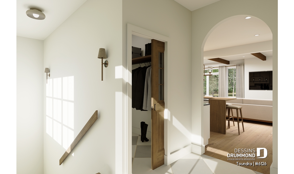 Vestiaire, Garde-manger, Ilôt, Walk-in ch. maîtres, Aire ouverte, Plafond à plus de 8', Lavabo double, Bain et douche séparés, Salle de lavage au rez-de-chaussée, Arche, Tablettes