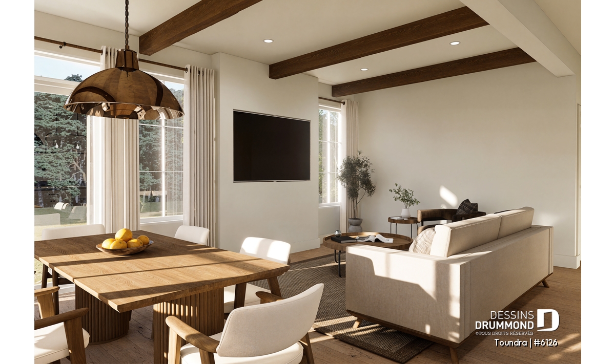Aire ouverte combinant cuisine, salle à manger et salon : un espace chaleureux pour recevoir famille et amis!