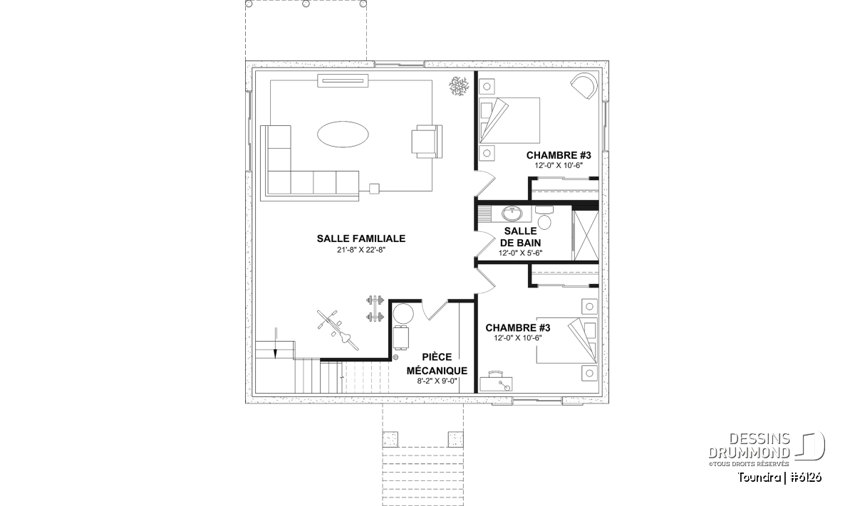 *Si vous souhaitez acheter le plan du sous-sol aménagé, veuillez sélectionner cette option dans le panier d'achat, dans la section "Sélectionner votre fondation". Si vous ne sélectionnez pas cette option, vous recevrez le sous-sol non fini, sans frais additionnel.