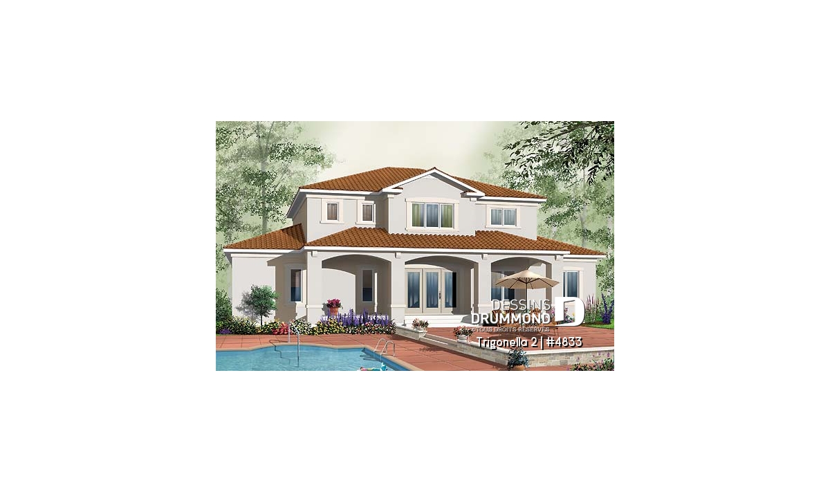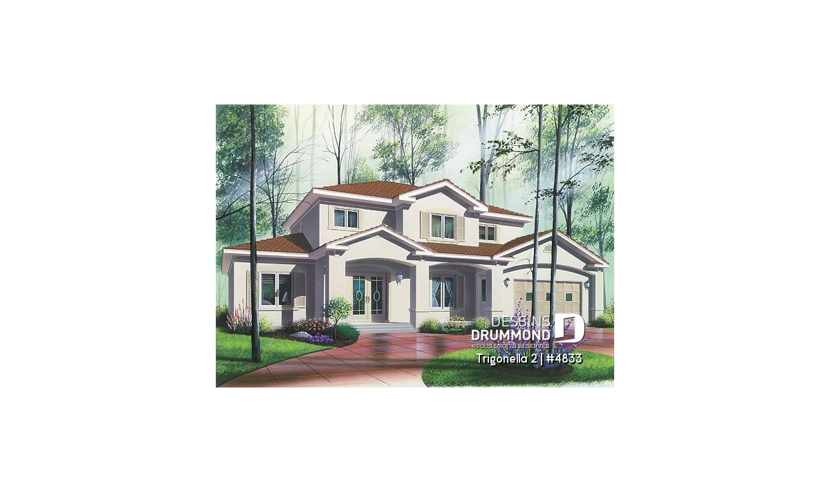 Vous êtes à la recherche d’une maison suffisamment logeable et de caractère différent ? Celle-ci, aux allures exotiques, suggère un porche abrité tant à l’avant qu’à l’arrière, un garage double et six chambres à coucher. Entrons donc sans plus tarder pour mieux apprécier l’aménagement intérieur.