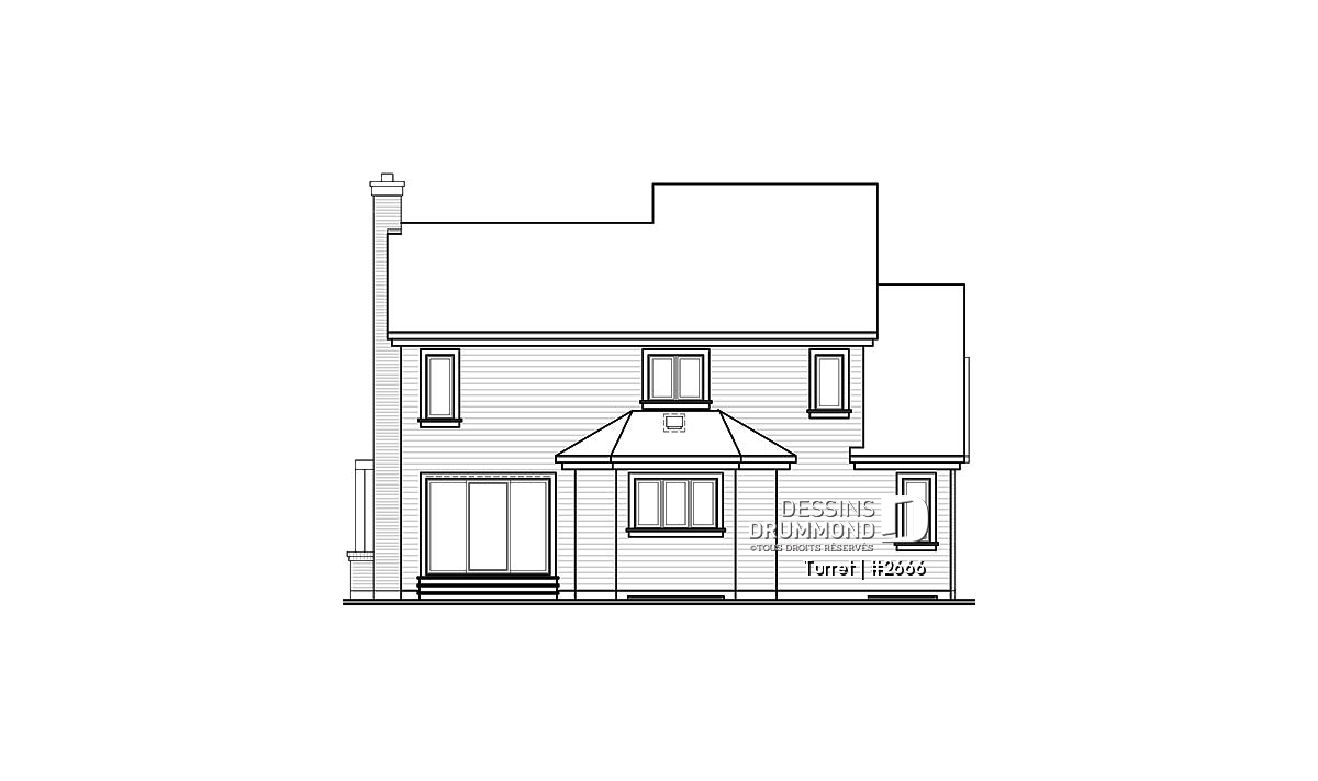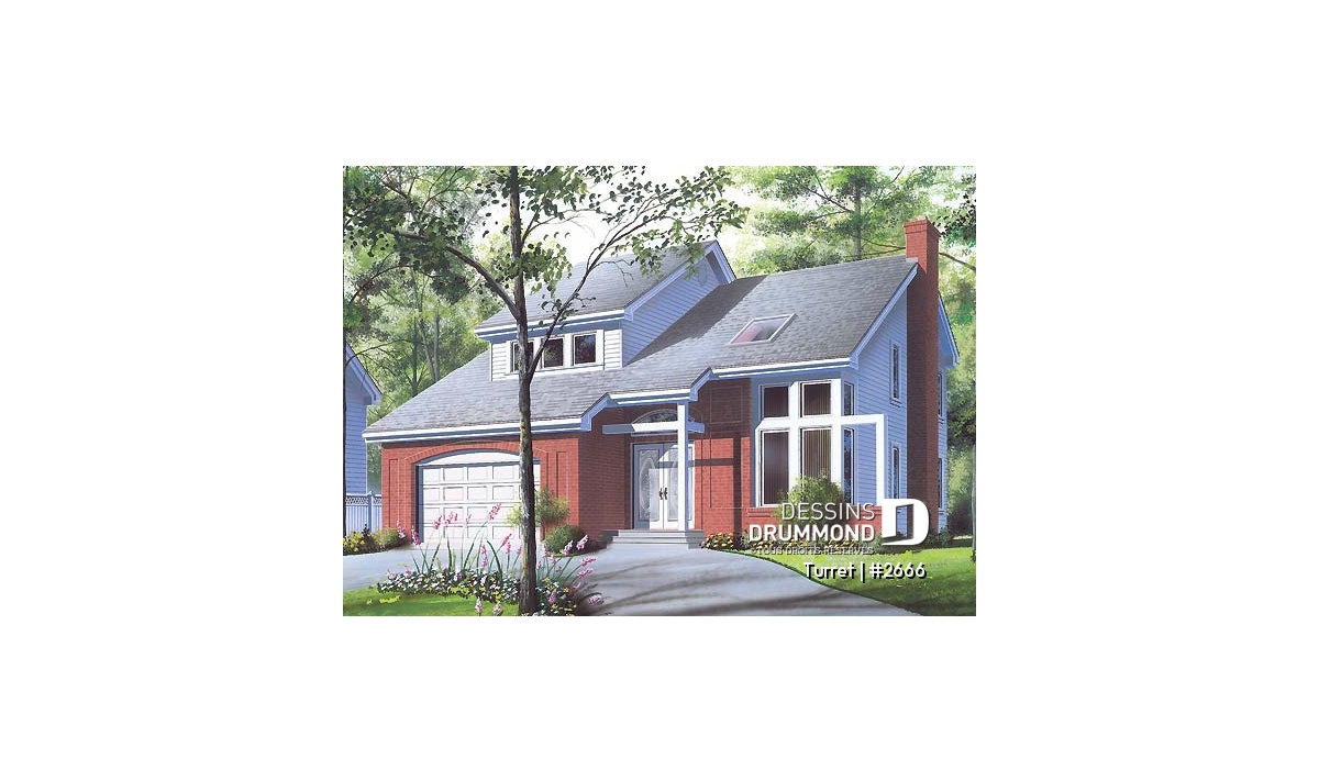 Vue avant - MODÈLE DE BASE - Plan de maison moderne 3 chambres, bureau, mezzanine, espace ouvert, îlot, garage - Turret