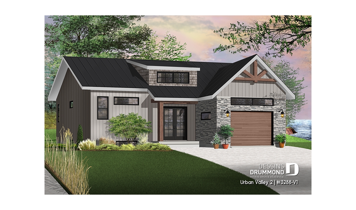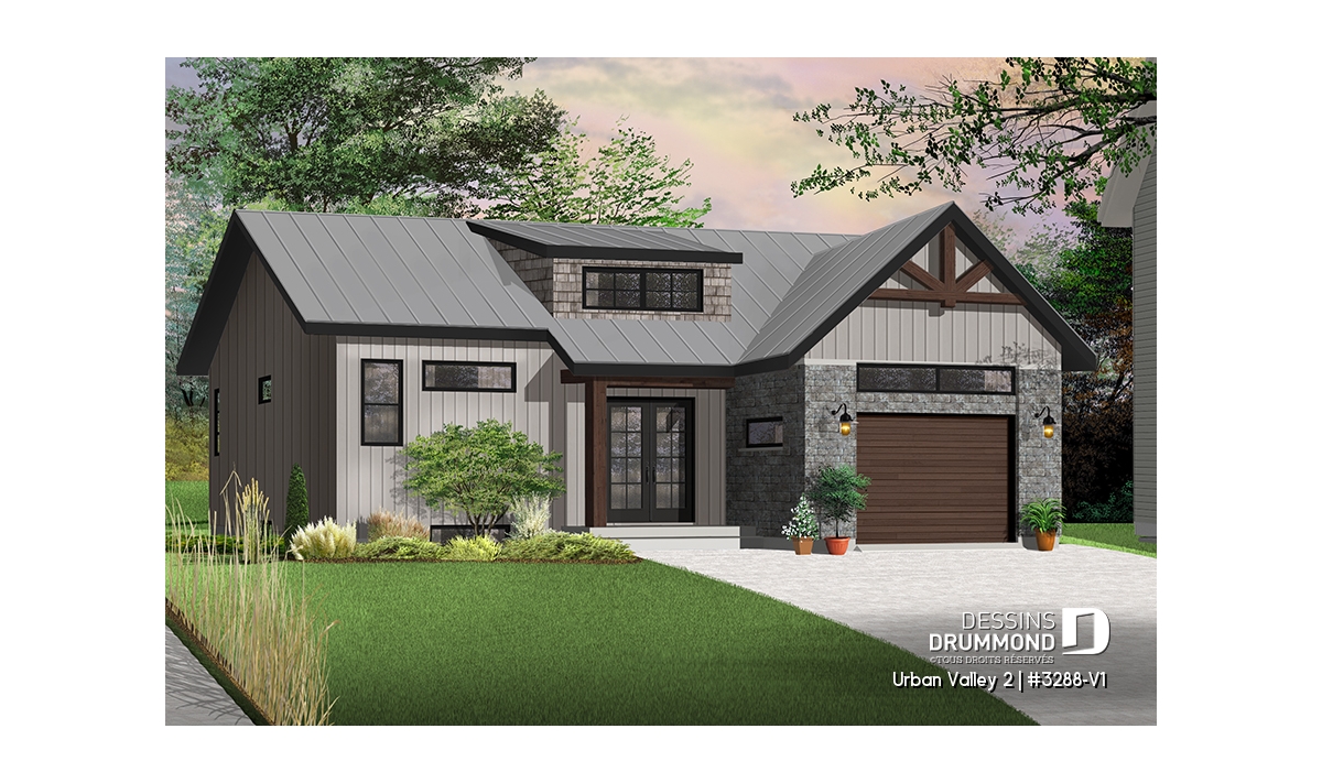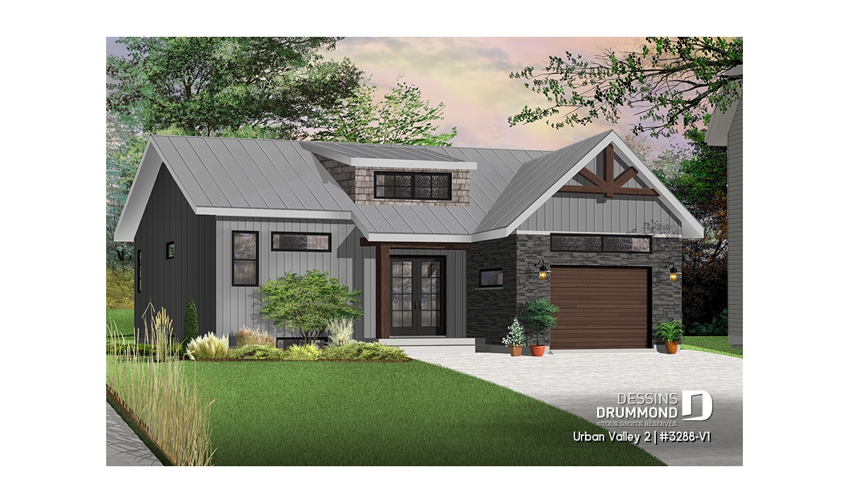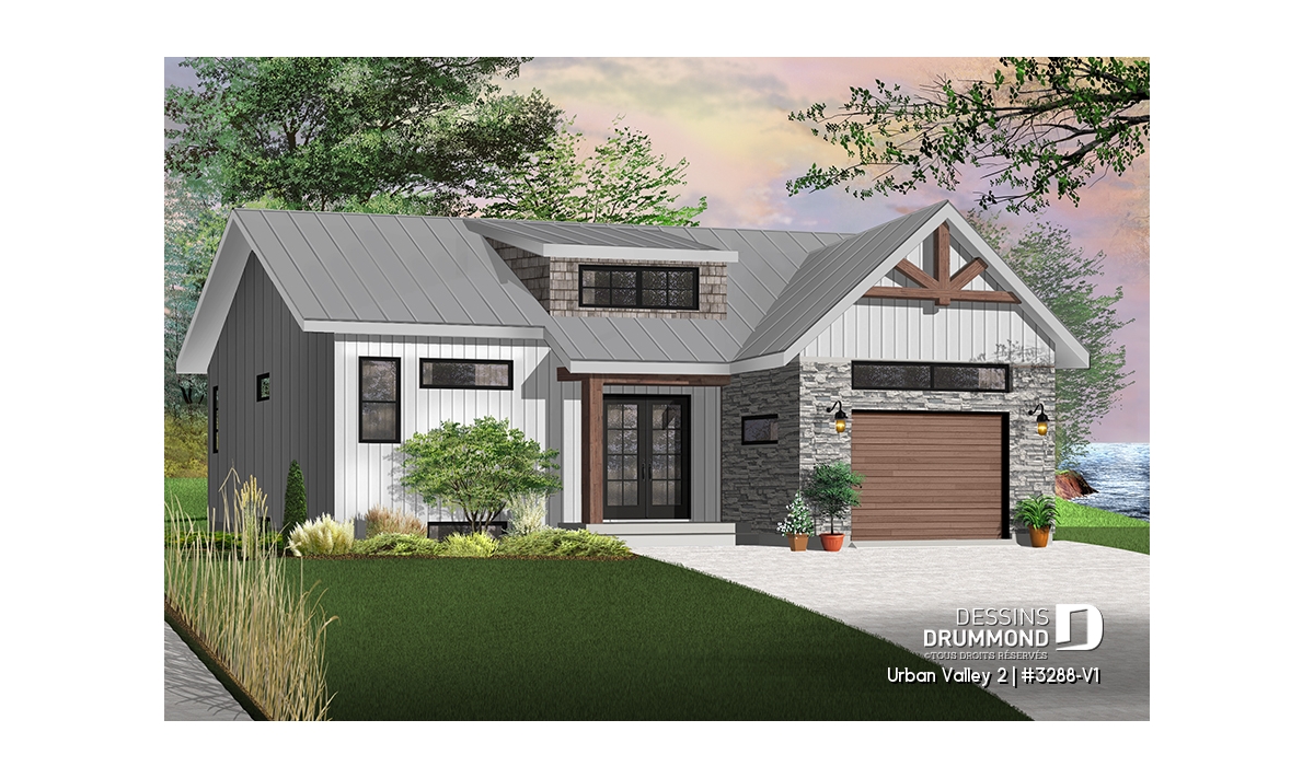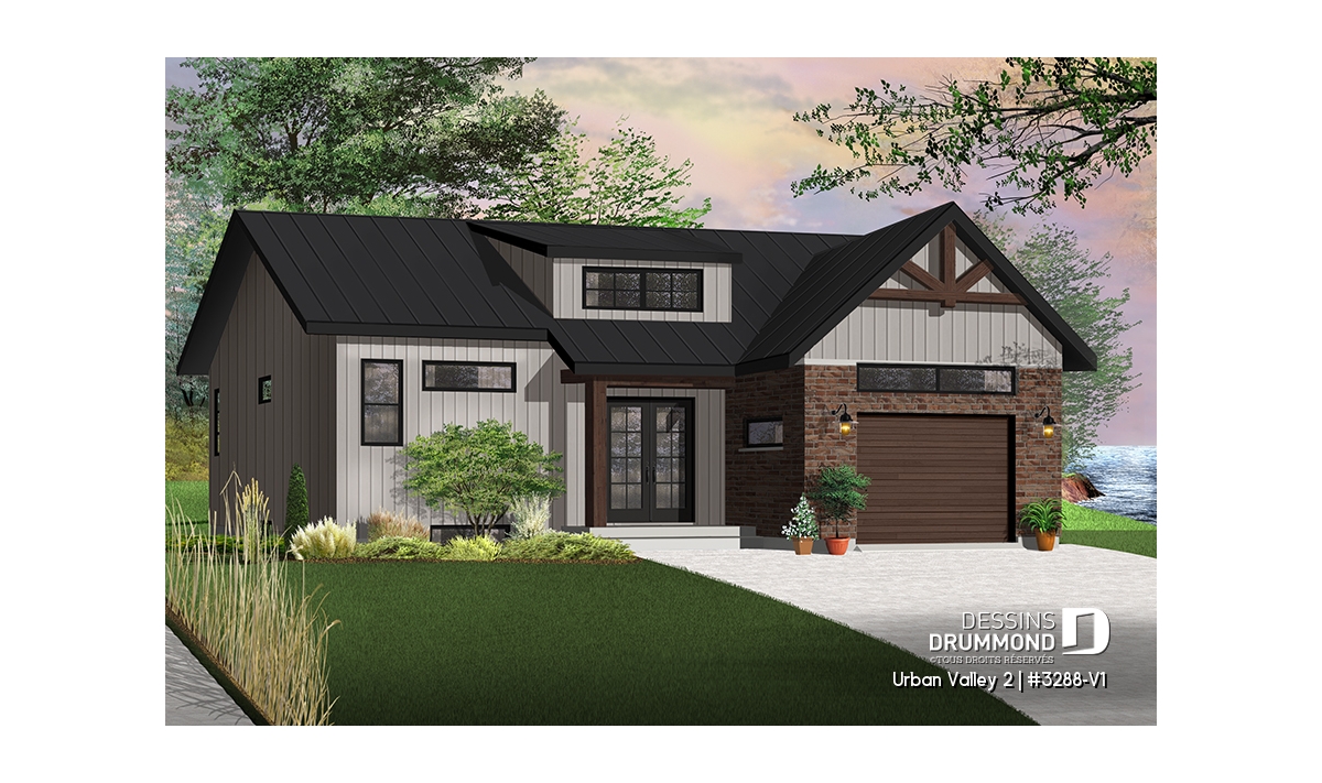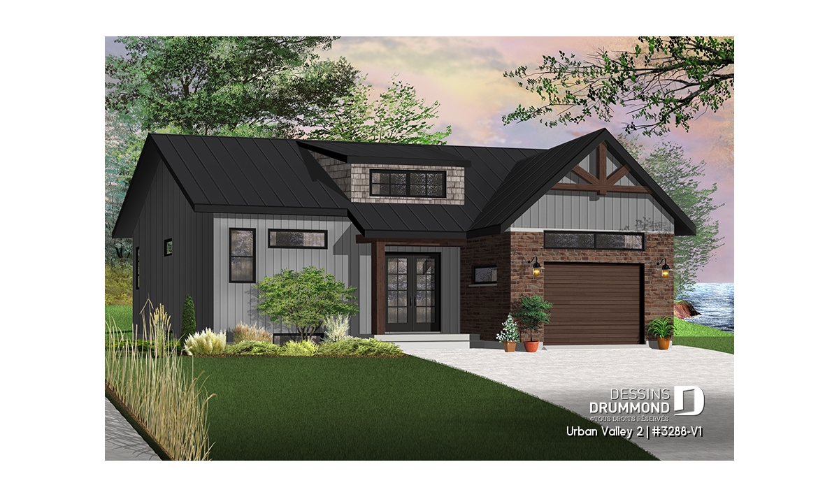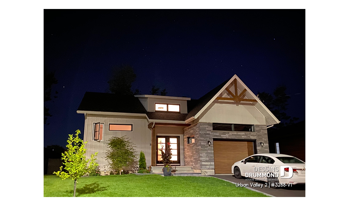 Maison moderne transitionnel à entrée split, offrant beaucoup de lumière naturelle.