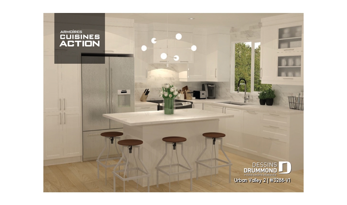 Ilôt, Plafond à plus de 8', Salle de lavage au rez-de-chaussée, Comptoir-lunch, Garde-manger, Aire ouverte, Bain et douche séparés