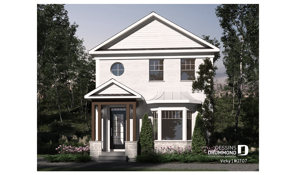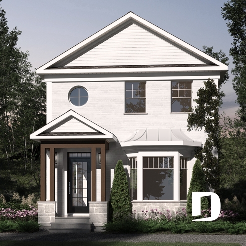 Petite maison d'inspiration victorienne moderne, très attrayante pour les terrains étroits.
