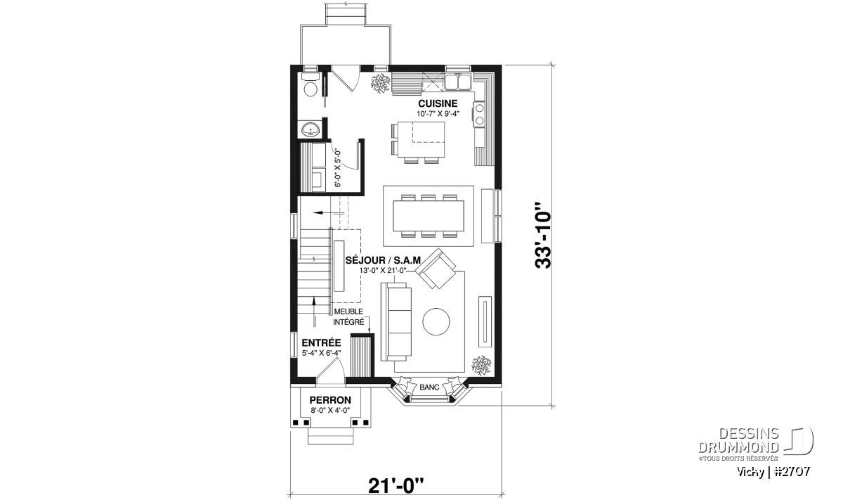 Terrain étroit, Salle de lavage au rez-de-chaussée, Walk-in ch. maîtres, Bain et douche séparés, Lavabo double, Ilôt, Aire ouverte, Meuble(s) encastré(s), Banquette
