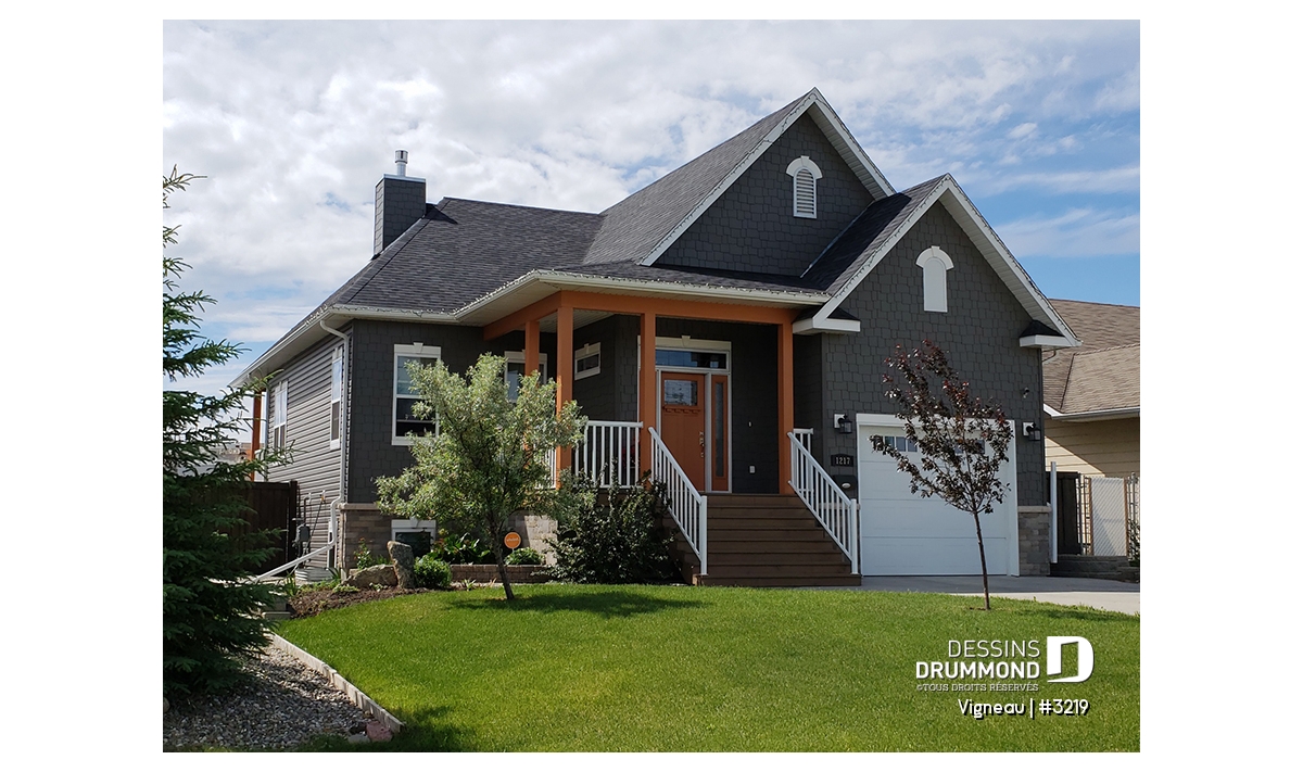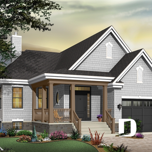 Découvrez le plan de maison VIGNEAU (#3219) plain-pied de style Cape Cod avec garage, conçu pour répondre aux besoins des familles québécoises en quête de confort et d’authenticité. Avec son extérieure champêtre et chaleureux, cette demeure se distingue par son élégante galerie avant qui invite à la détente et son charme intemporel qui s’harmonise parfaitement aux paysages du Québec.