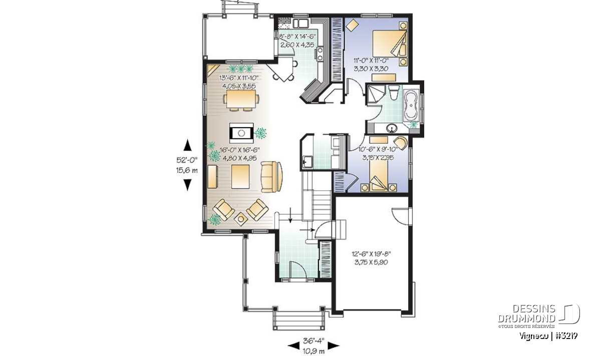 À l’arrière, une spacieuse terrasse couverte de 12'4" x 8'0" offre un espace idéal pour profiter des quatre saisons, qu’il s’agisse de repas en famille, de soirées entre amis ou simplement de moments de repos à l’air libre. Le vestibule d’entrée abaissé, doté d’une garde-robe pratique, assure une transition fluide entre l’extérieur et l’intérieur, tout en conservant la chaleur de la maison.