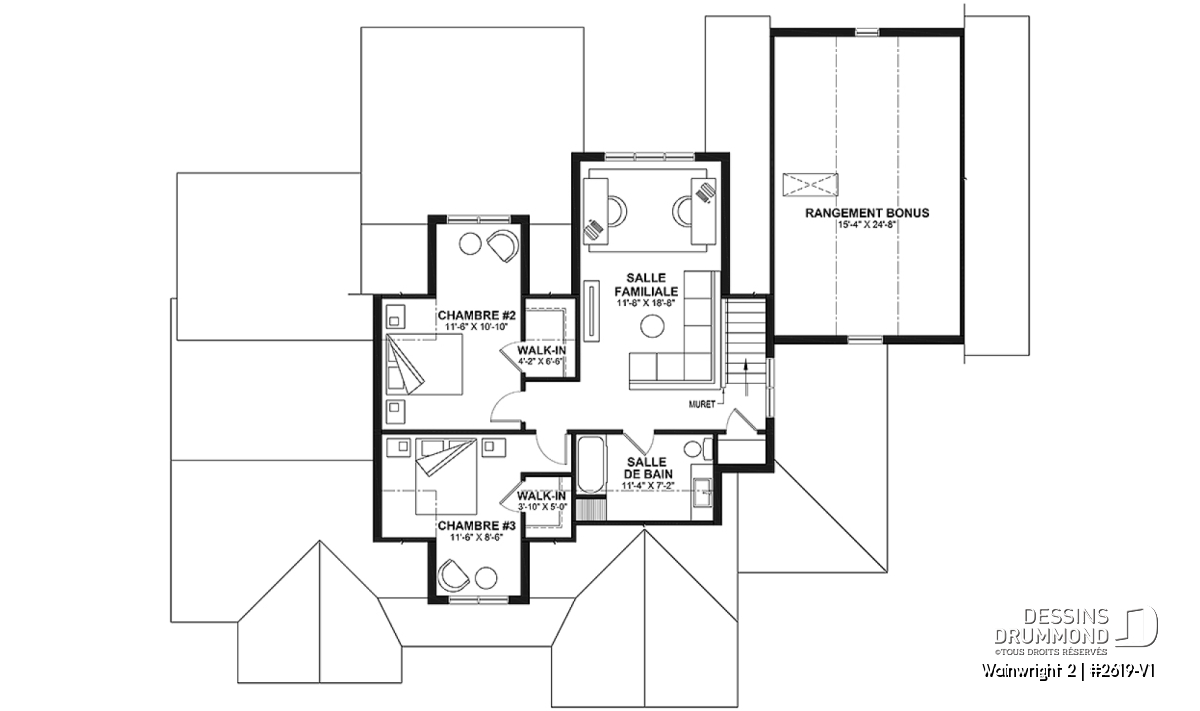 Suite des parents au rez-de-chaussée et chambres des enfants à l'étage.