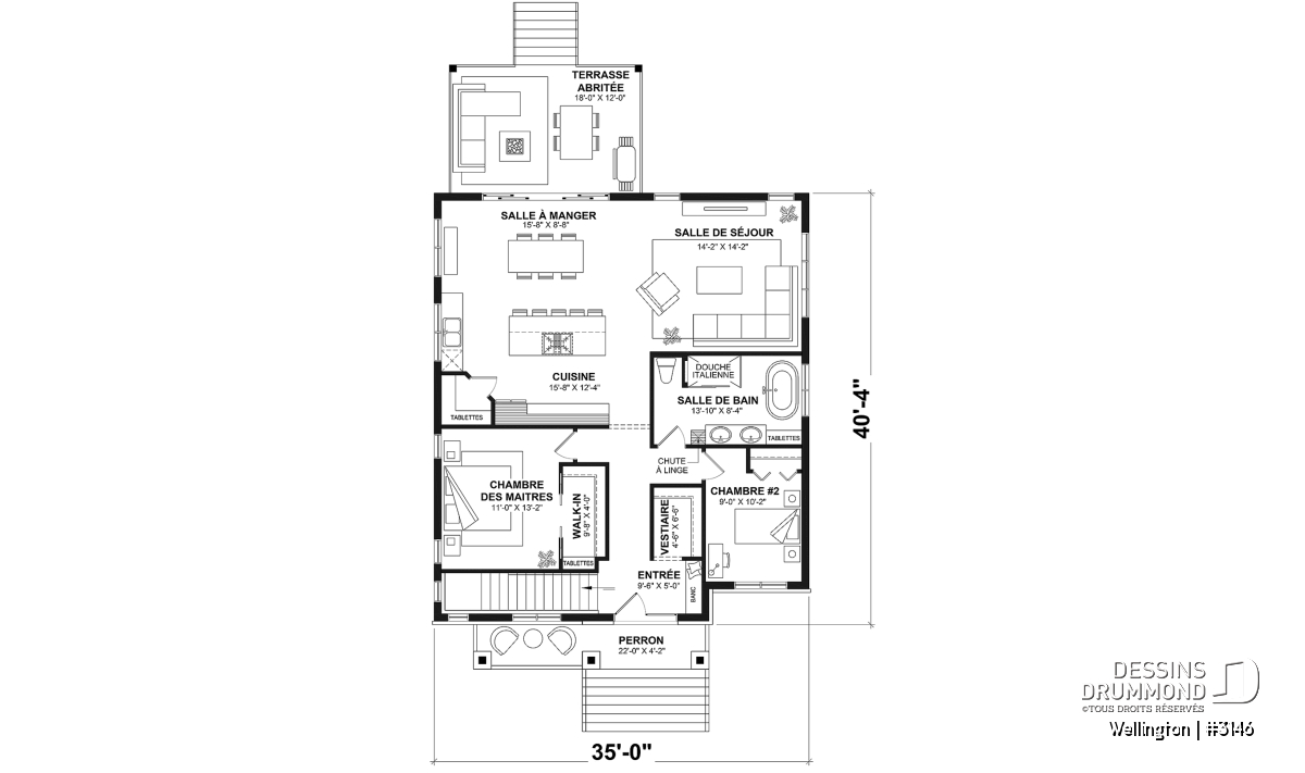 Aire ouverte, Chute à linge, Garde-manger, Ilôt, Suite des maîtres au rdc, Walk-in ch. maîtres, Bain et douche séparés, Lavabo double, Vestiaire, Tablettes, Terrasse abritée, Plafond à plus de 8', Entrepreneur
