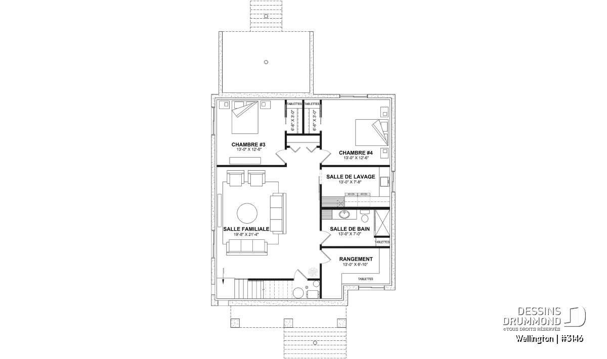 *Si vous souhaitez acheter le plan du sous-sol aménagé, tel que présenté sur la page de ce plan, veuillez sélectionner cette option dans le panier d'achat, dans la section "Sélectionner votre fondation". Si vous ne sélectionnez pas cette option, vous recevrez le sous-sol non fini, sans frais additionnel.