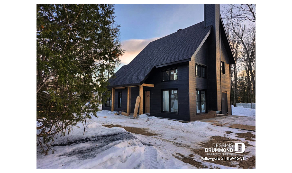 Finalement, ce super chalet permet de profiter de l’extérieur, même à l’intérieur grâce à sa fenestration abondante. Sans oublier qu’il possède un sous-sol aménageable, et un modèle plus abordable de 2 chambres. (#3946)