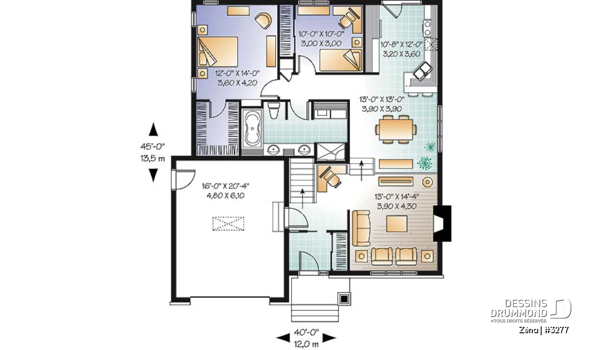 | Largeur | 40'0" | Profondeur | 45'0" |